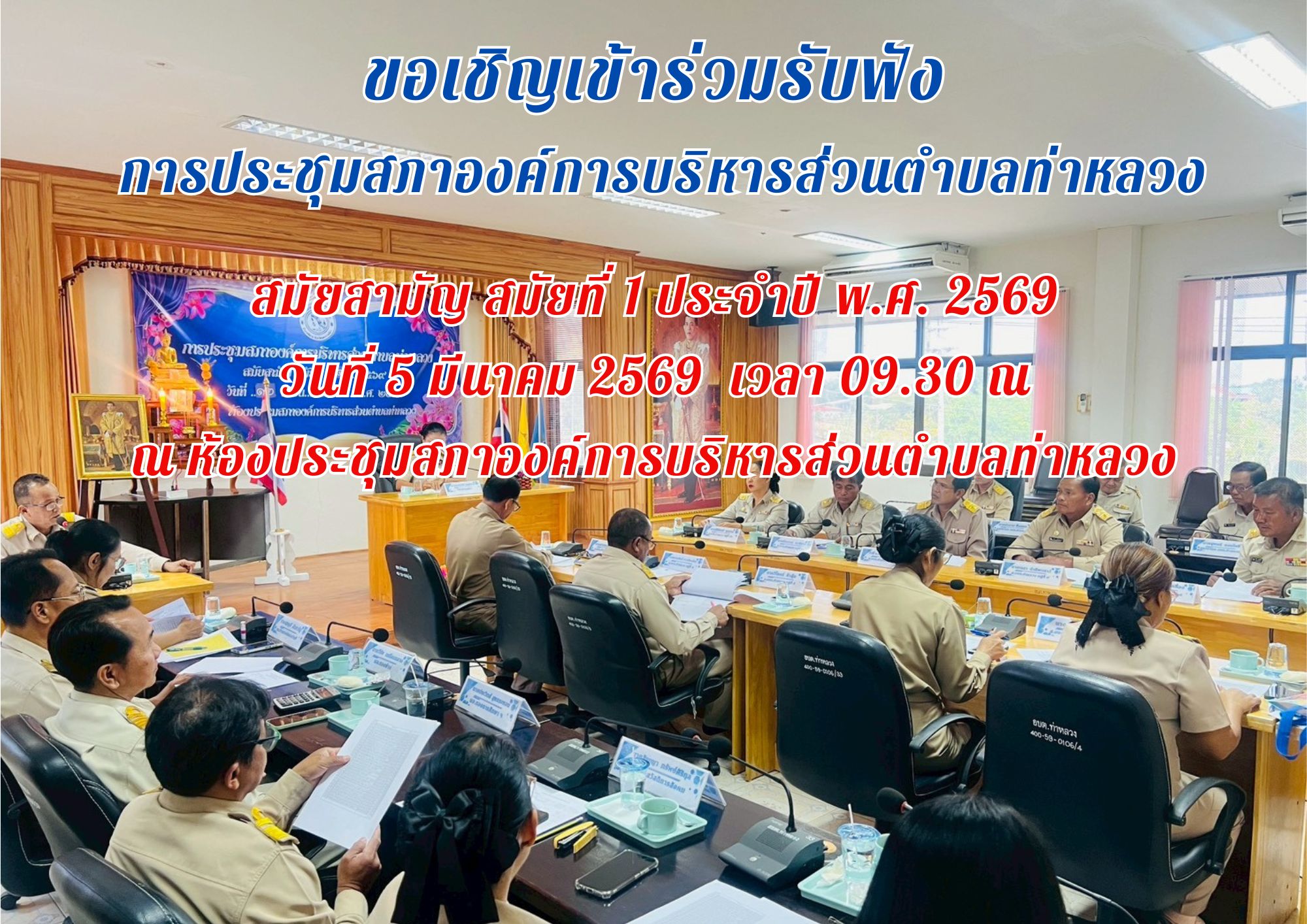 📢 ขอเชิญประชาชนผู้สนใจเข้าร่วมรับฟังการประชุมสภาองค์การบริหารส่วนตำบลท่าหลวง